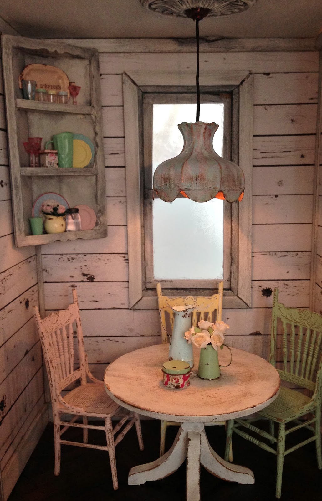 I've made three little lights and hung them together in the lounge.