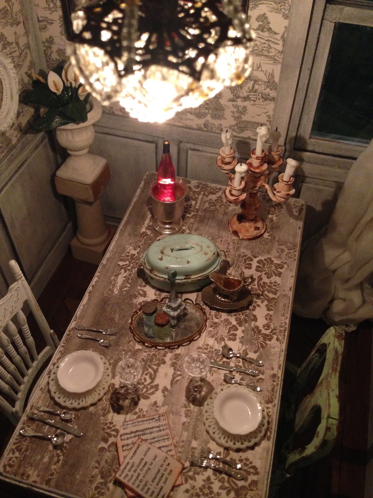 There's a chandelier in the formal dining room which I made when I did the Valentine's Day scene.