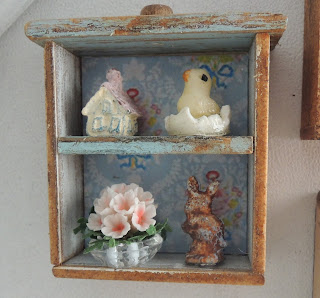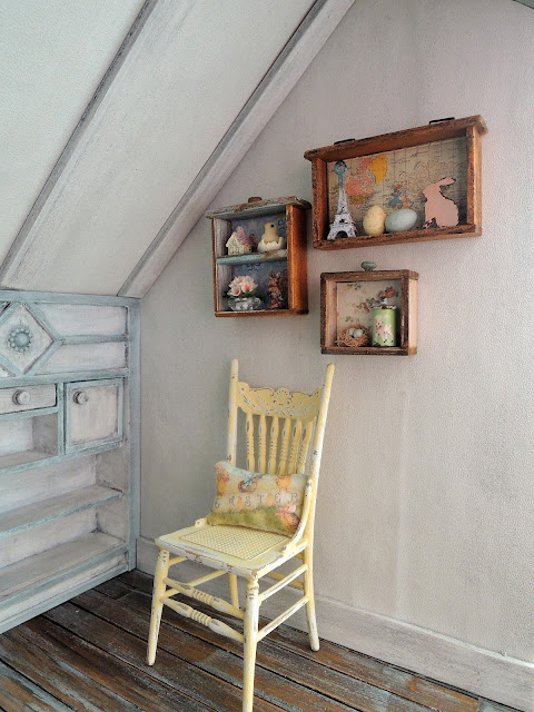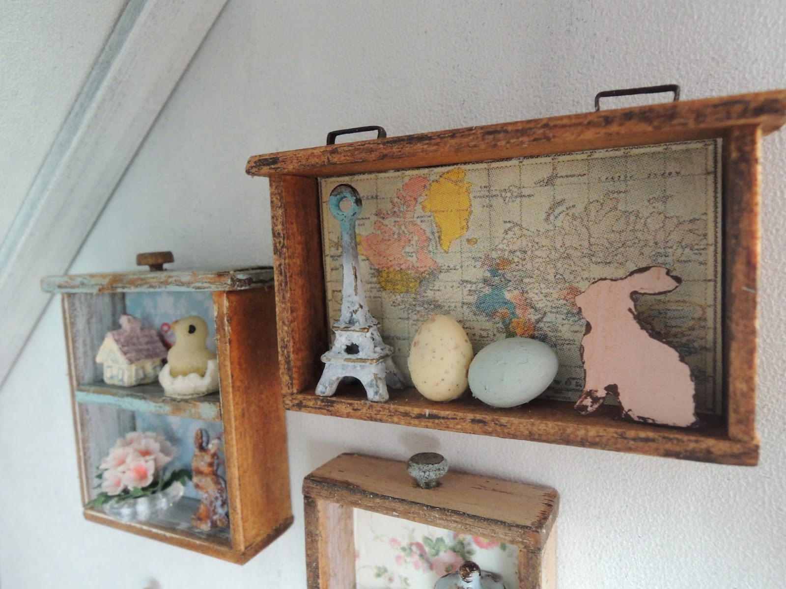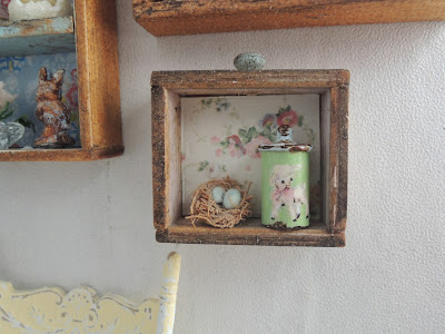 I've just made these little drawer shelves for the farmhouse attic bedroom so I decided to add some Easter decor to them.