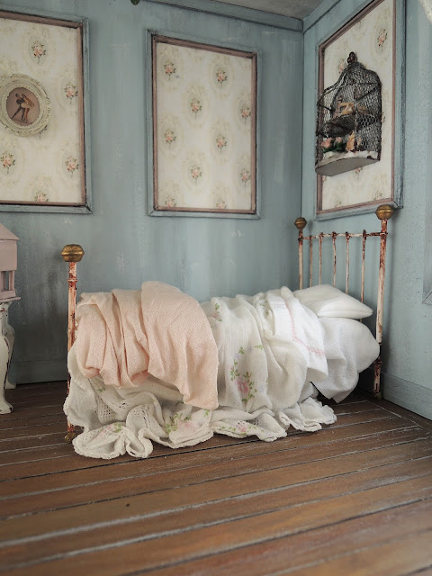 I like messy unmade beds in dollhouses...like someone just got up and walked away.