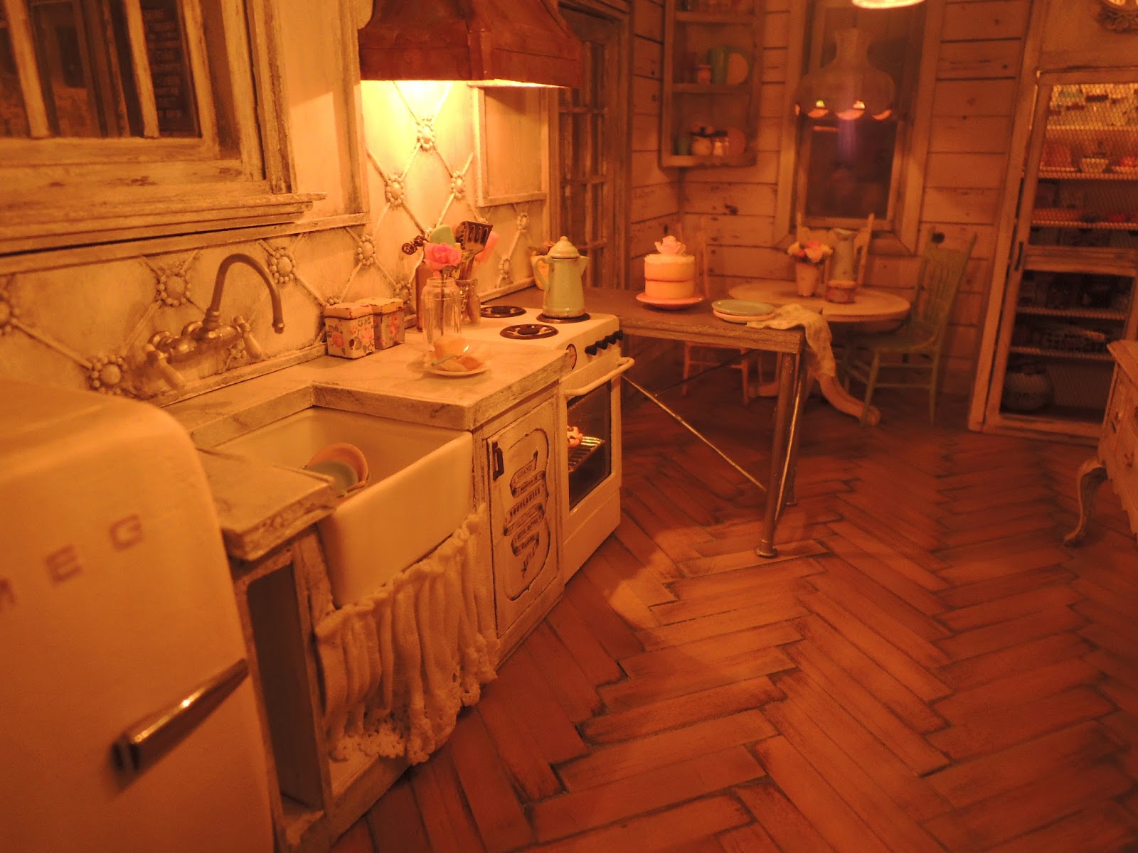 I built a copper rangehood (well, I made a rangehood from cardboard and painted it copper!)...and there's a light (I can hear Brad and Janet singing that!) in the rangehood and the oven...going overboard with lights in this room.