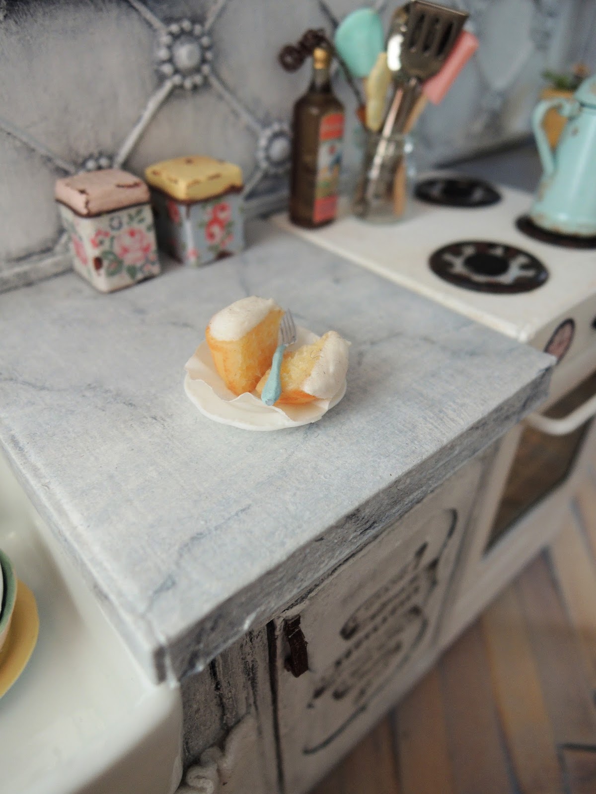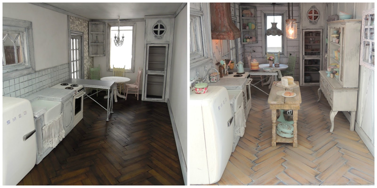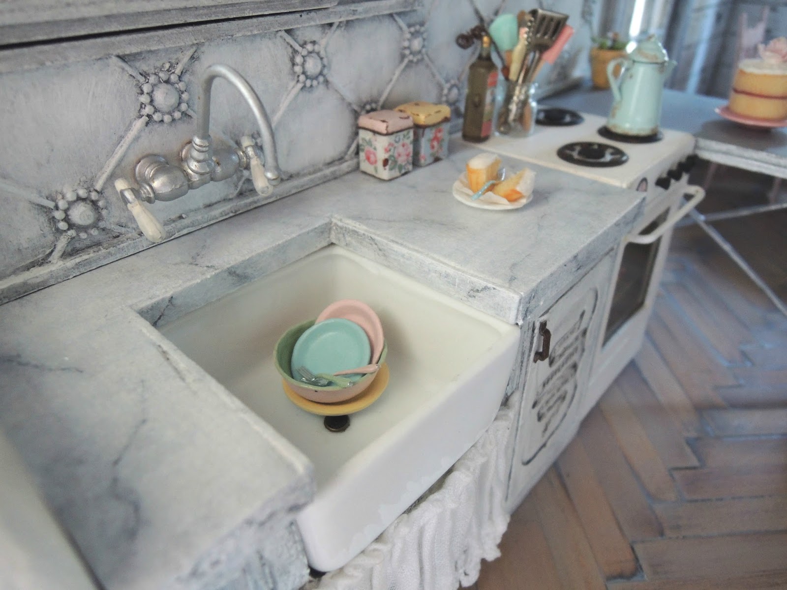 I would LOVE to have a marble bench top in my real kitchen but as that is a hopelessly expensive dream I suddenly decided I should have a go at painting a marble bench top in the farmhouse.
