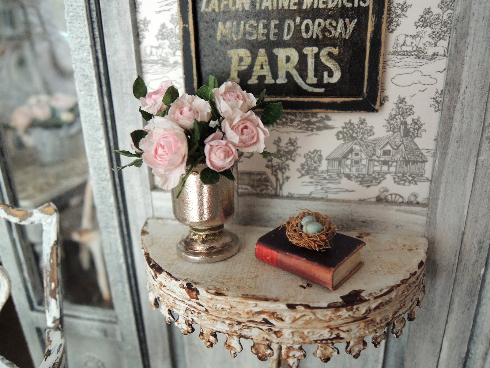 The trim on the edge of the table is a metal piece that came off a trinket box I bought years ago.